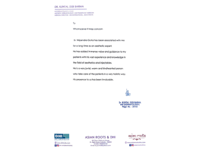 Md MahenurTrustindex verifies that the original source of the review is Google. I visited here for my pigmentation treatment and as Dr suggested me a customised treatment of different lasers together for my skin and the result which I got was so amazing that it seems as if Dr has done a magic. My pigmentation vanished in just few sessions. Lumièra clinic is a must to place and Dr Nripendra Guha is a magician. Chandni RawatTrustindex verifies that the original source of the review is Google. I always trust Nripendra with skin care and his advice and treatments! He is definitely the best as he understands one’s needs specifically and doesn’t impose service which I really appreciate! Shobha KalyanaswamyTrustindex verifies that the original source of the review is Google. Sonu ChopraTrustindex verifies that the original source of the review is Google. Great Clinic and fabulous ambience..very neat and clean and positive vibes.. and I trust only Nripendra as far as my skin goes.. thanks for a fabulous skin Nripendra Ranjita ShethTrustindex verifies that the original source of the review is Google. Lumiera is owned by most knowledgeable cosmetologist Dr. Nripendra Guha ...one will get the best service and after care ! Kritika ShethTrustindex verifies that the original source of the review is Google. Got a laser treatment done from Dr.Nipendra Guha. It was painless, the service and aftercare is excellent, i highly recommend it ! suman royTrustindex verifies that the original source of the review is Google. Lovely experince. Expertise knowledge with care makes it a best place in Kolkata for skin care treatmentGoogle rating score: 5.0 of 5, based on 7 reviews